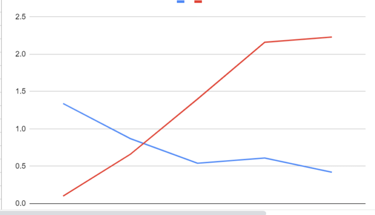 Our research question is “How does the popularity of Pizza Hut versus Chipotle compare over the decades?” We searched for this question by using COCA to make and analyze charts to compare the popularity of both brands from the 1990s-2010s. Over time, the mentions of Pizza Hut in media declined from 1.34 to 0.42, while the mentions of Chipotle in media increased from 0.10 to 2.23, These findings suggest that Chipotle gained popularity from the 1990s-2010s while Pizza Hut lost popularity during this time. These trends show how our culture has changed throughout the decades. As more modern restaurants, importance of health, and different cultures of food became more popular, a restaurant that met all these requirements became more popular while a restaurant that did not became less popular.